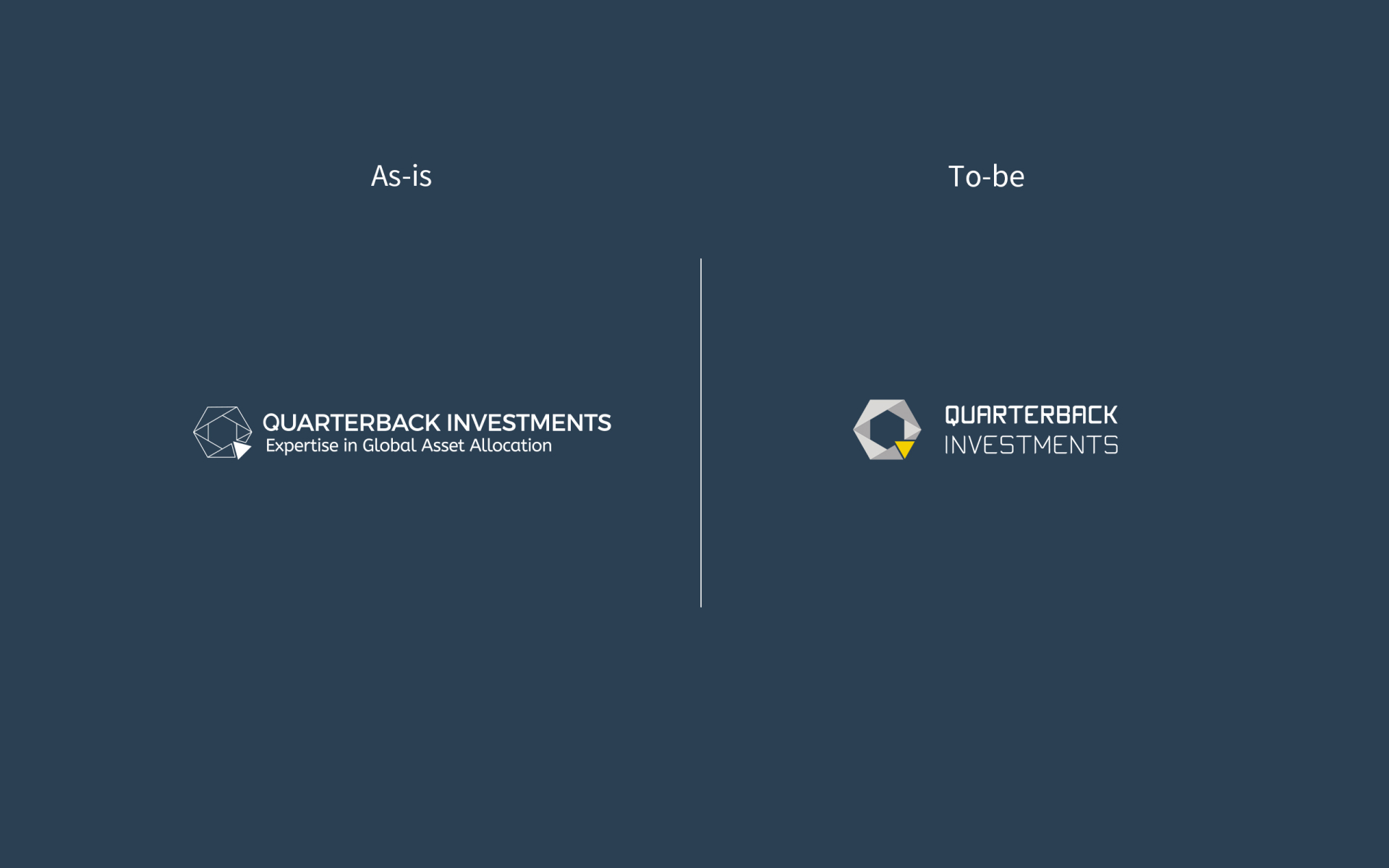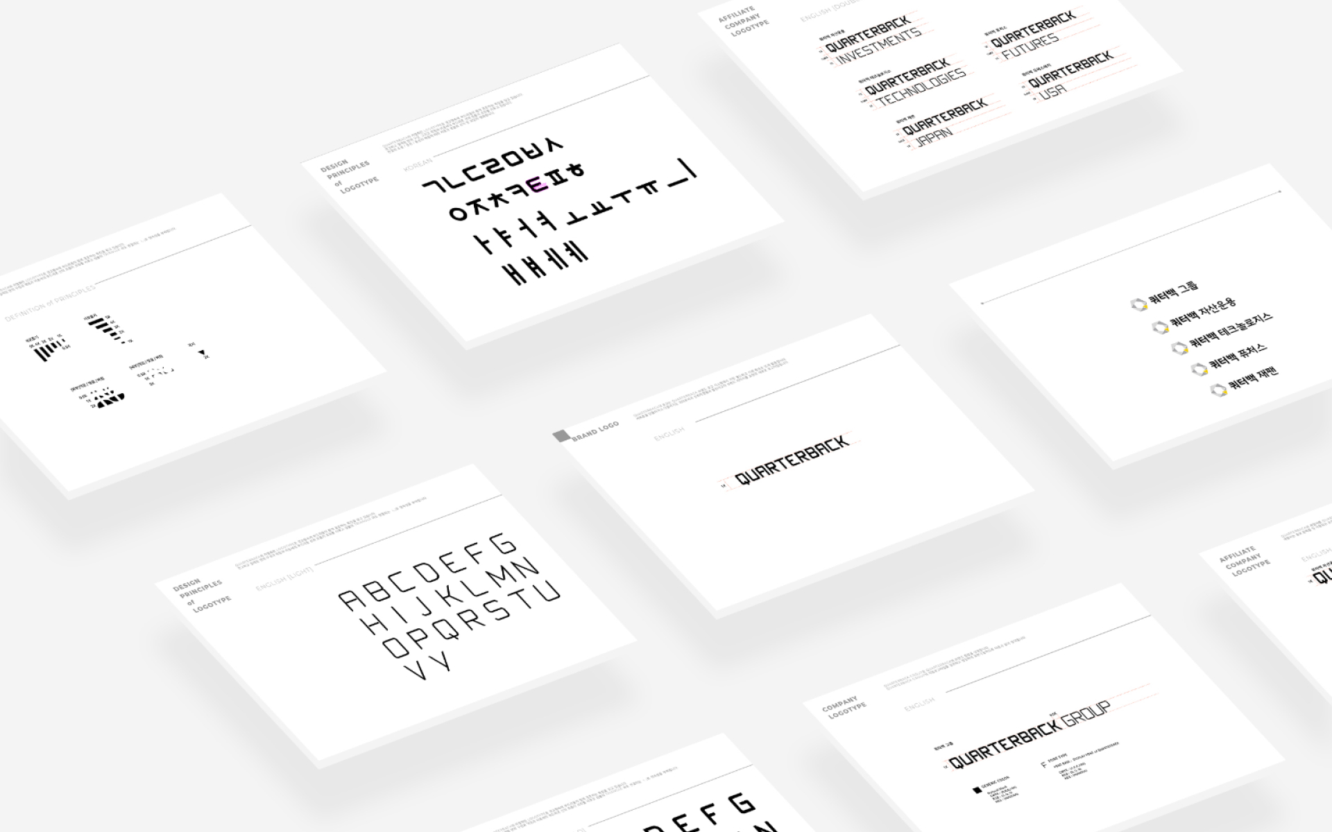 쿼터백그룹 산하 쿼터백자산운용, 쿼터백테크놀로지스, 쿼터백퓨처스의 브랜드아이덴티티를 통합하는 기업이미지 재구축 프로젝트. 인공지능을 적용한 로보어드바이저라는 새로운 분야를 개척하면서, 새롭지만 전통적인 금융의 안정성을 지향하는 모습으로의 Brand renewal을 진행하였다.